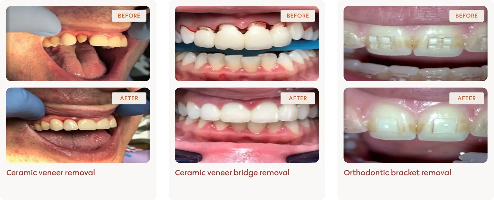 The laser passes through the ceramic braces or veneers, weakening the glue, making it easy and pain-free to remove them.